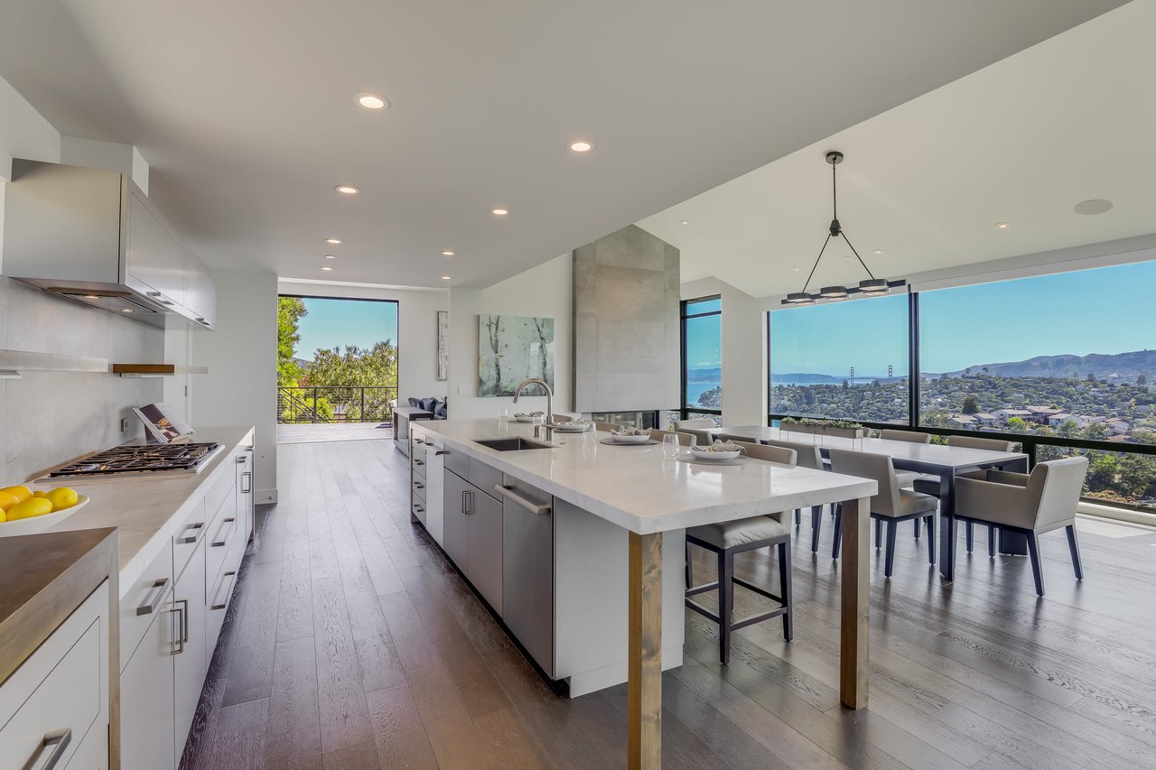 Tasteful finishes in ‘Restoration Hardware’ style; high ceilings, and view windows throughout make this one of the most captivating homes on the Tiburon Peninsula