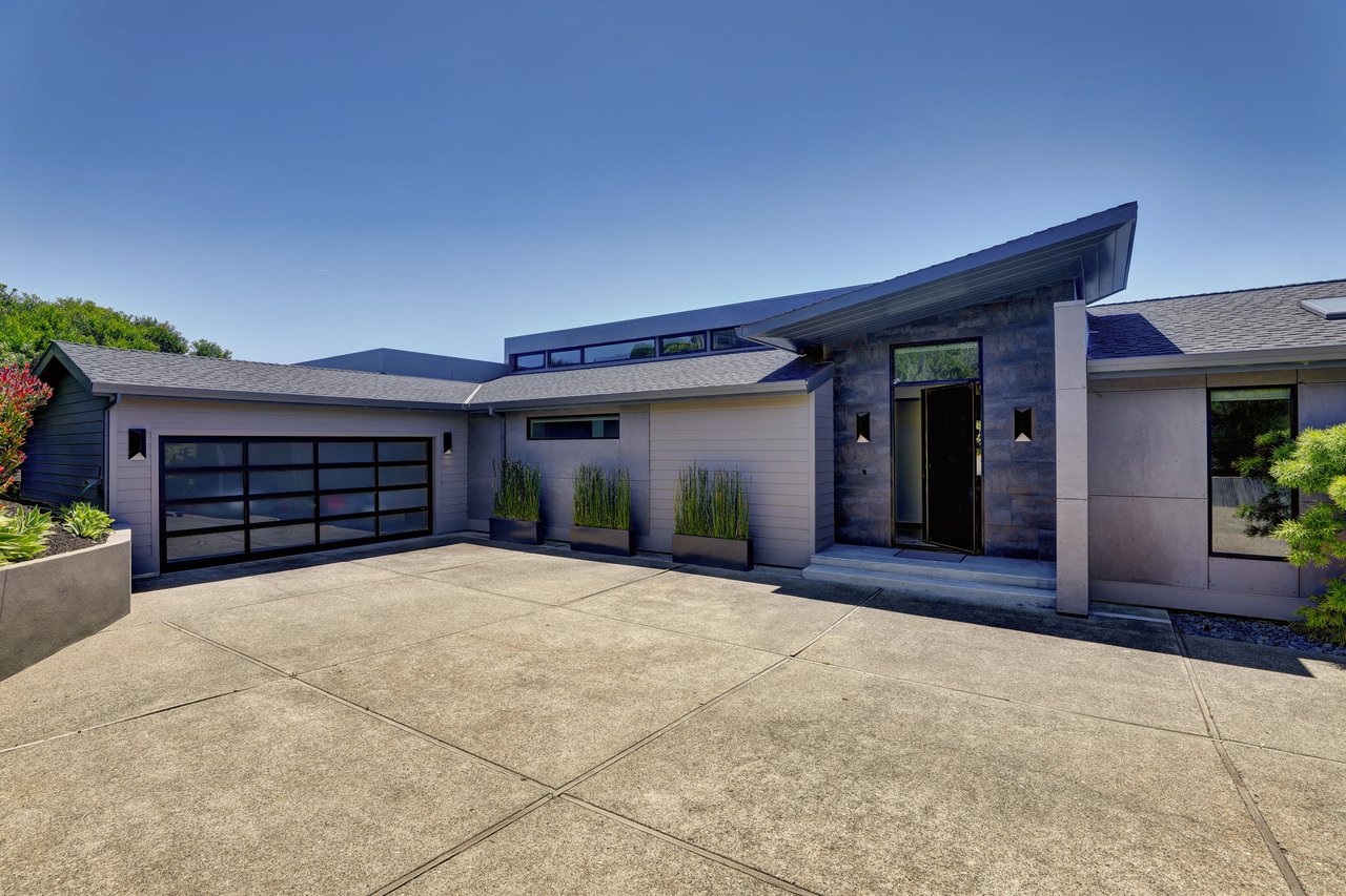 Exceptional contemporary residence with panoramic views spanning San Francisco, the Golden Gate Bridge, Angel Island, Sausalito, Belvedere Island, to Mt. Tamalpais