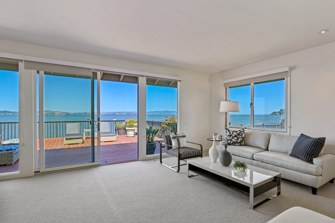 This luxury waterfront residence is in a league of its own, all on one level, offering unparalleled scale and quality, with sweeping views of the bay and the San Rafael bridge from almost every room.